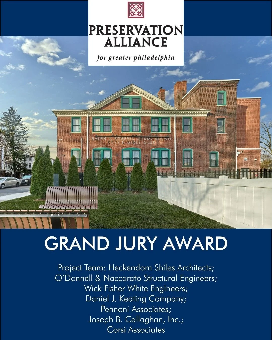 The newly renovated Ralph J. Roberts Boys and Girls Club of Germantown has received a Grand Jury Award from the Preservation Alliance Club for Philadelphia. The primary mission of Preservation Alliance of Greater Philadelphia is to protect historic properties through advocacy. Grand Jury Awards are given to historic building projects that have been restored or renovated in an exemplary way.
