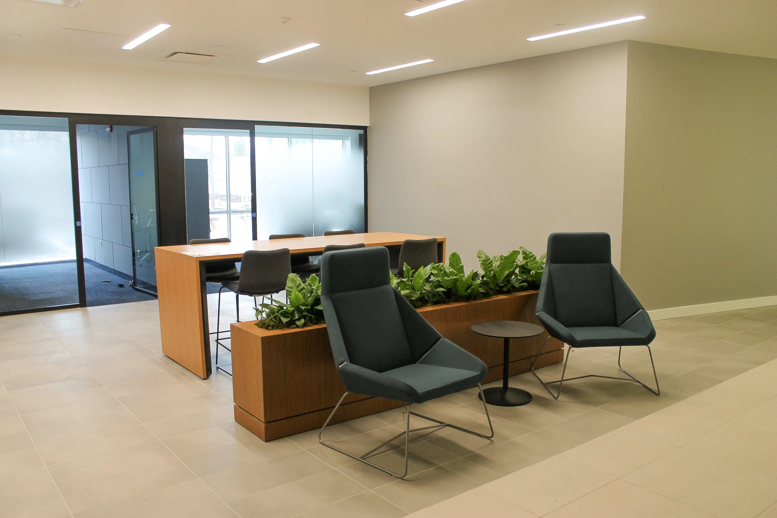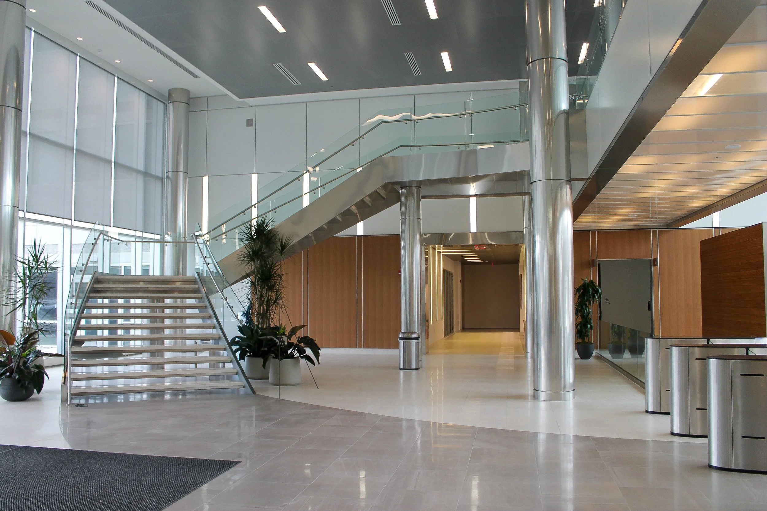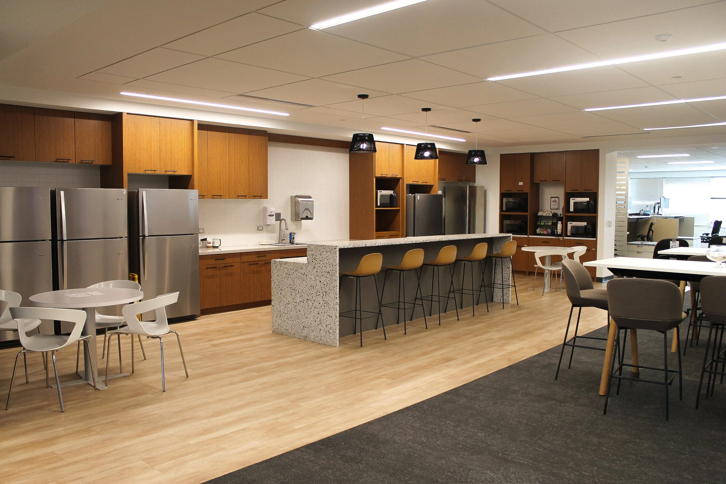 Phase 5 completed the renovation of the remaining office areas on the lower levels, finalizing the full building fit-out.