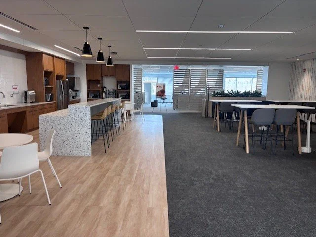 Phases 1 and 2 included the full interior renovation and fit-out of three 30,000 SF floors within one wing. Work involved new huddle, breakout, and conference rooms, open office workstations, and café hubs on each floor. Existing data closets were fully upgraded to meet the client’s current standards, and each floor received new HVAC and lighting control systems. These phases were completed and occupied in 2024.
