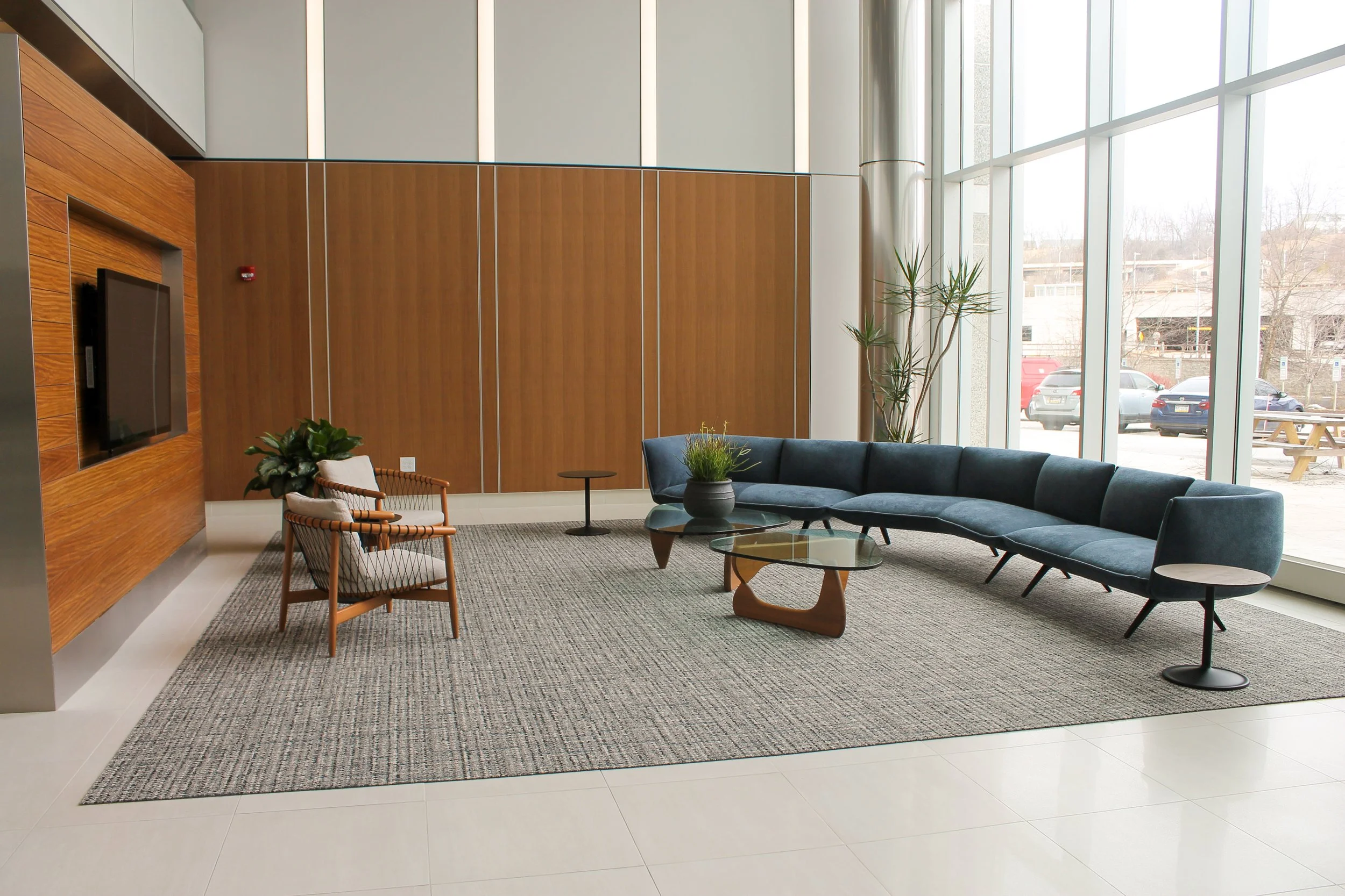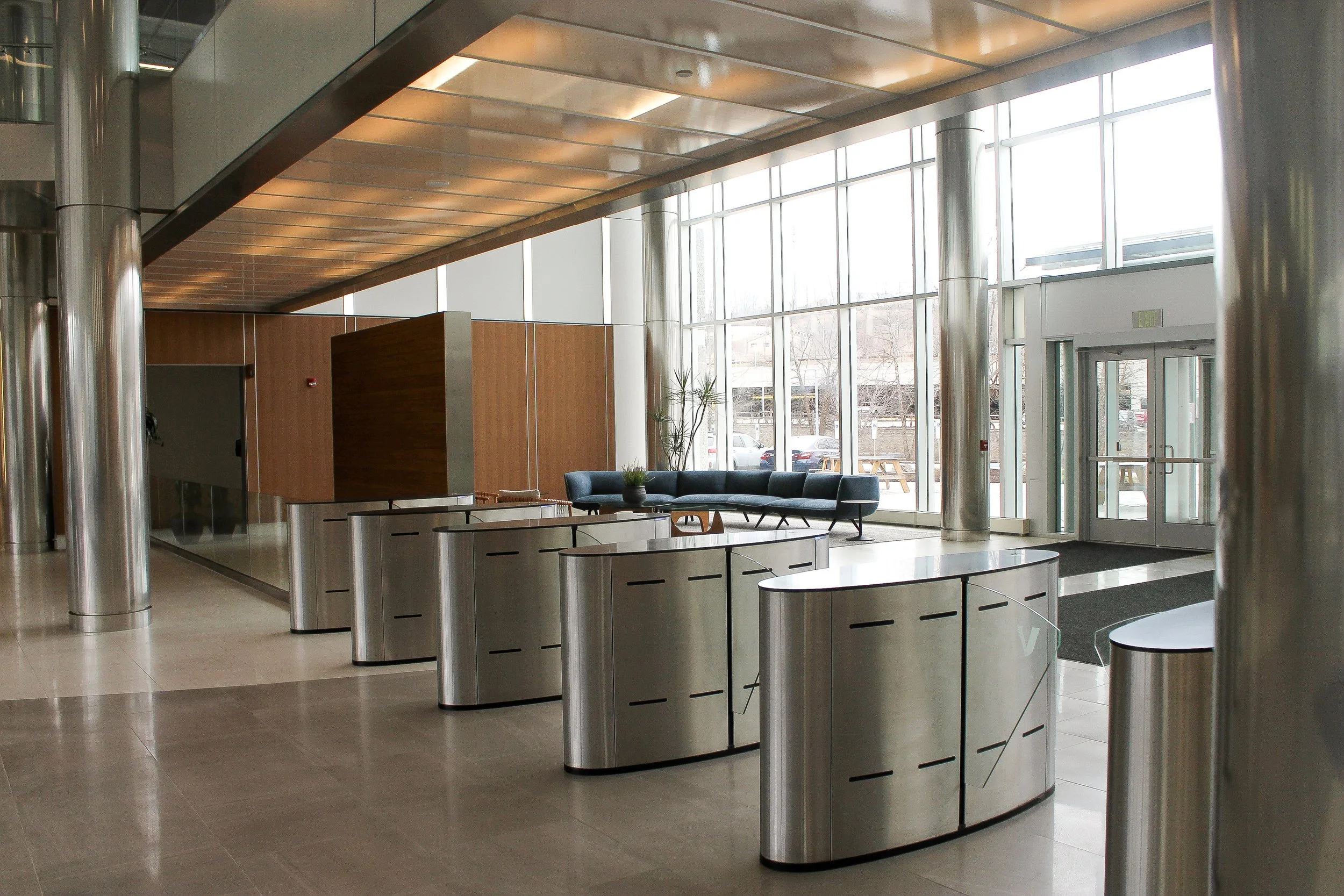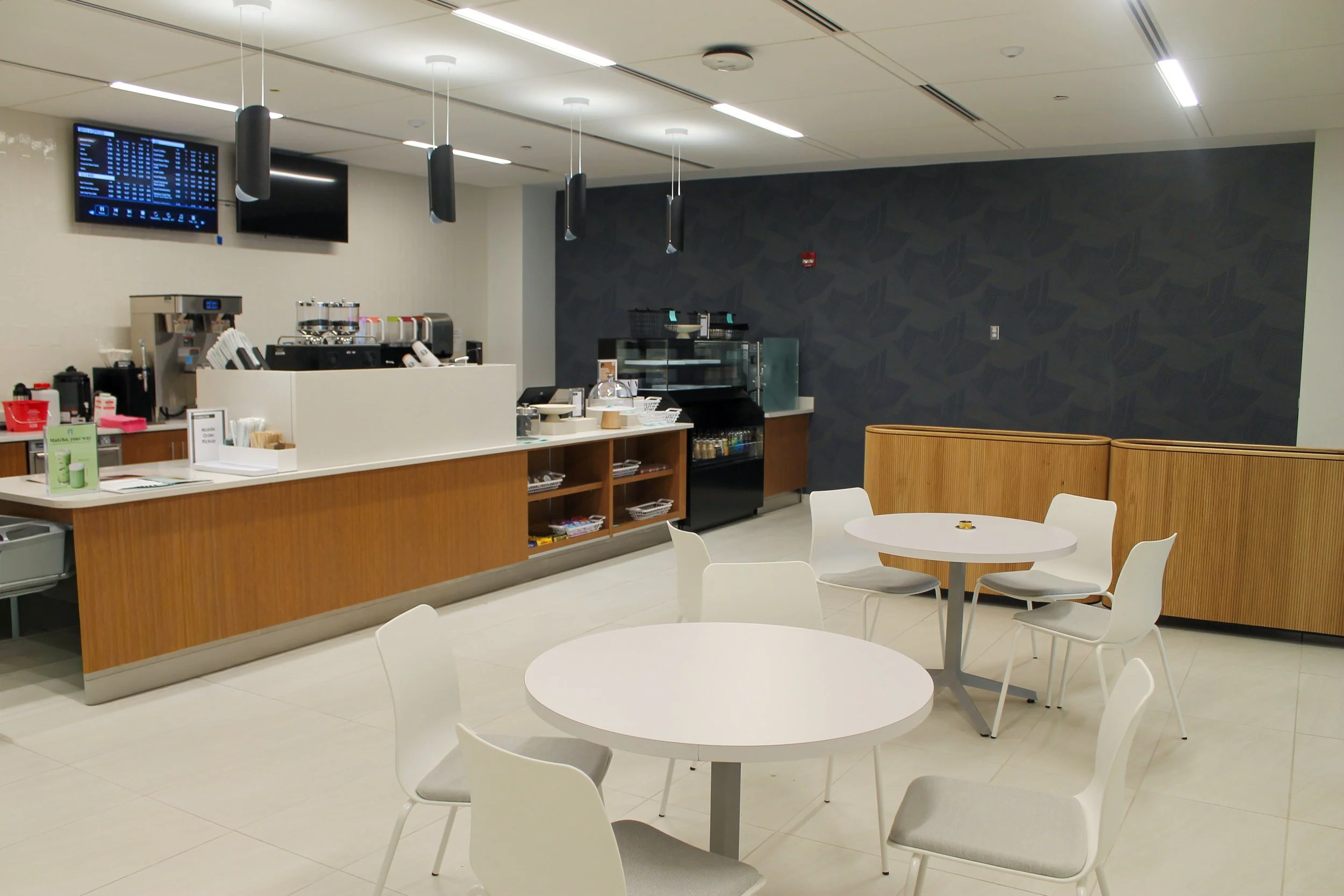 Phase 4 included enhancements to the main lobby and ground-floor amenity spaces, such as a coffee bar, fitness center, and associated locker and restroom facilities. This phase also incorporated site improvements, including new guard shacks, access gates, signage, EV charging stations, and lighting upgrades throughout the parking and drive areas.